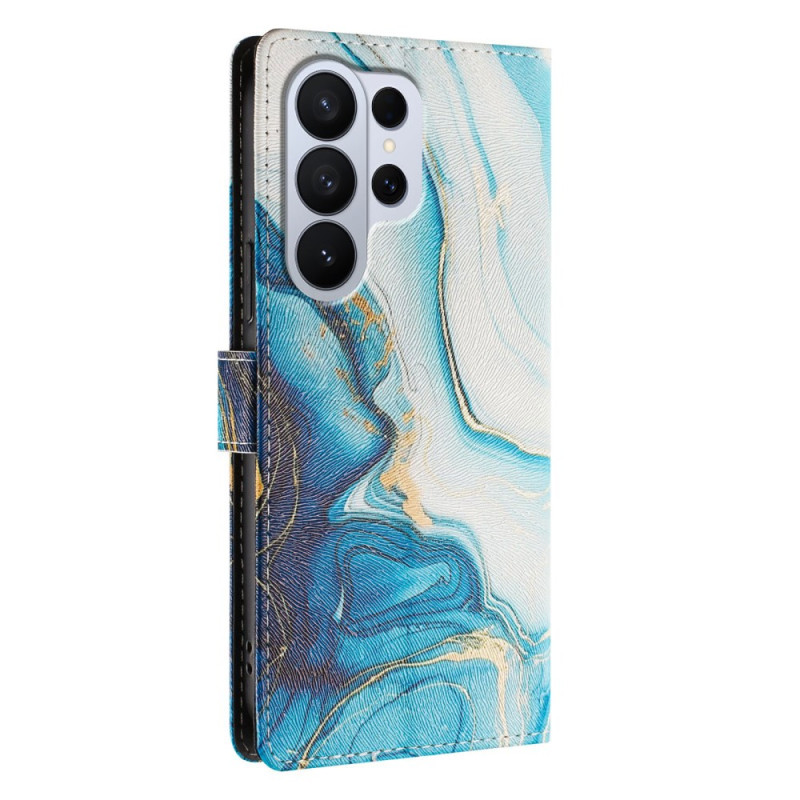Schützen Sie Ihr Samsung Galaxy S26 Ultra elegant mit dieser Brieftasche im raffinierten blauen Marmor-Design. Mit zwei Kartenfächern, einem Bargeldfach und einer abnehmbaren Handschlaufe vereint es Stil und Praktikabilität.