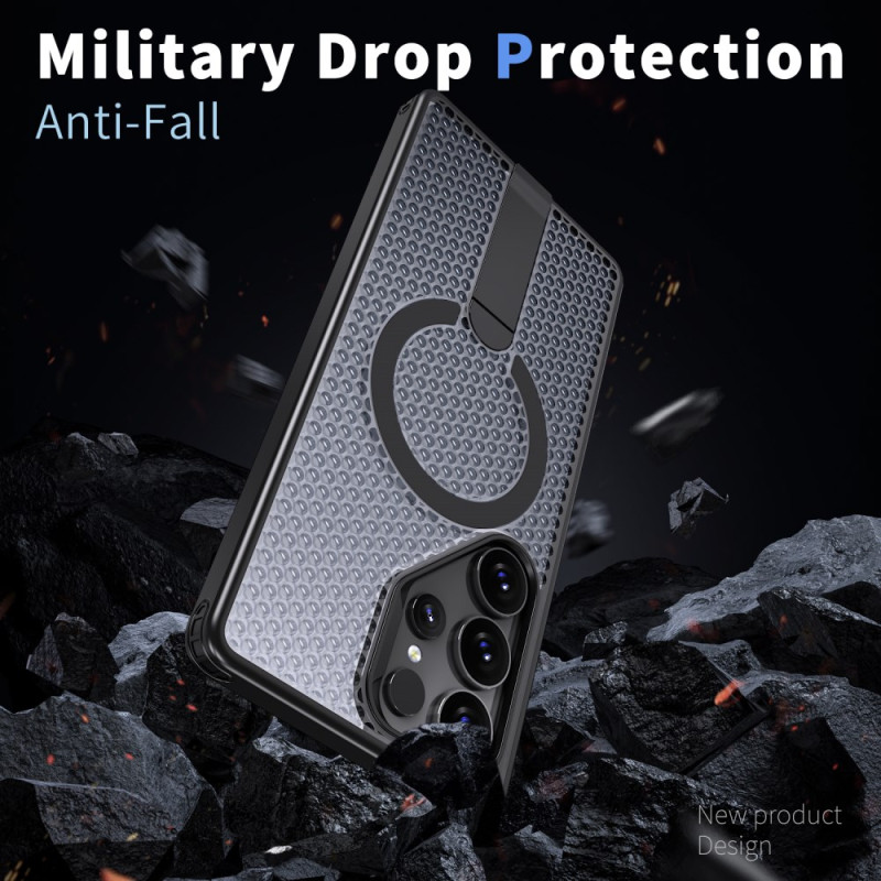 Protégez votre Samsung Galaxy S26 Ultra avec cette coque magnétique dotée d'une texture quadrillée élégante. Équipée d'une béquille pliable intégrée et d'un anneau magnétique, elle offre une protection optimale contre les chutes tout en améliorant la dissipation de chaleur de 50%.