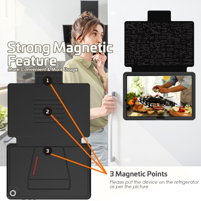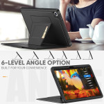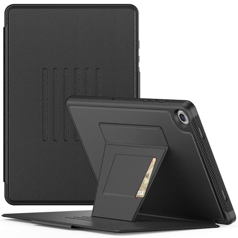 Die Hülle verfügt über eine praktische Halterung für die freihändige Nutzung, eine automatische Schlaf-/Wachfunktion und einen Kartensteckplatz auf der Rückseite.