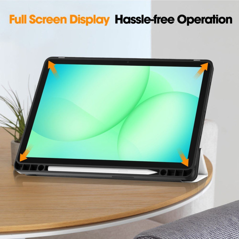 • Tri-fold-Halterung: Stabile Position für Videos und bequemes Tippen.