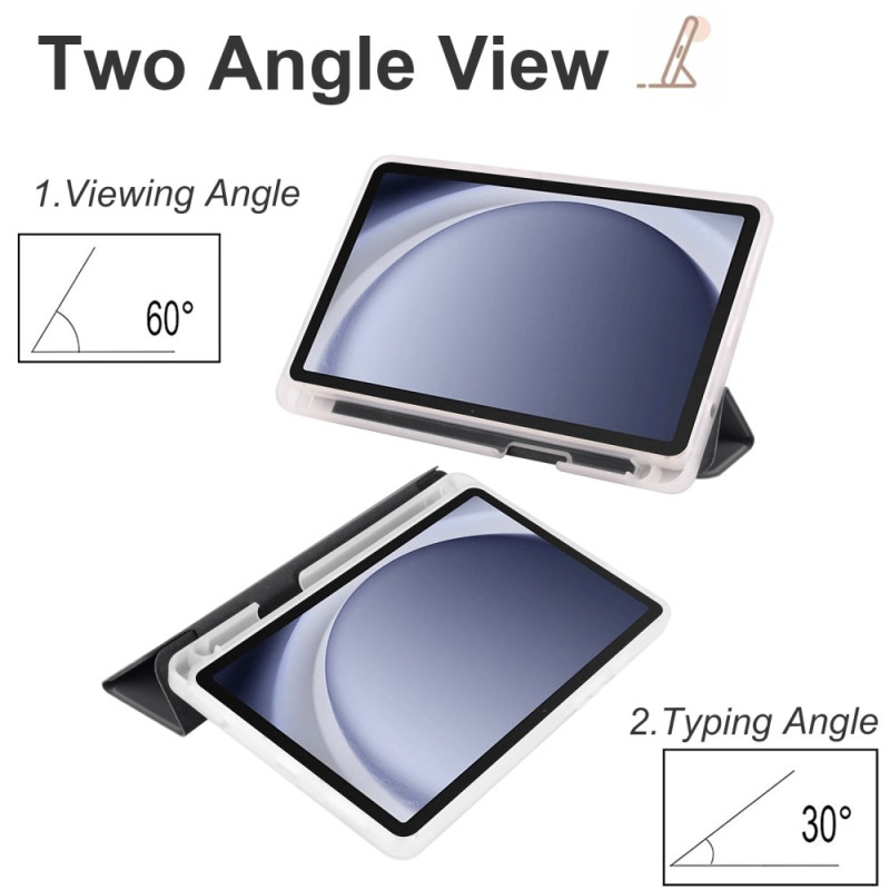 Mit einer transparenten Rückseite und einem dreifach faltbaren Cover bietet es auch einen Stiftschlitz. Beachten Sie, dass der Stift nicht im Lieferumfang enthalten ist.