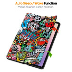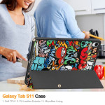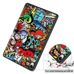 Entdecken Sie unsere trendige Hülle für Samsung Galaxy Tab S11. Mit ihrem Tri-Fold-Design, dem integrierten Ständer und dem einzigartigen Graffiti-Muster vereint sie Stil und Funktionalität. Genießen Sie den umfassenden Schutz, den praktischen Stiftehalter und die Auto Wake/Sleep-Funktion für ein optimales Tablet-Erlebnis.