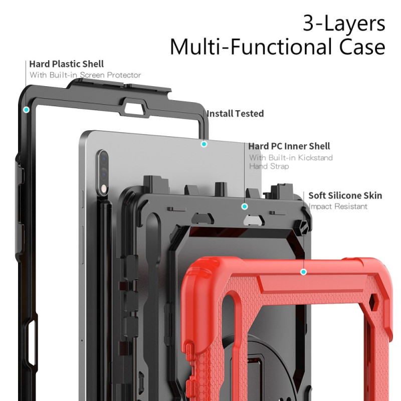 Entdecken Sie unsere stoßfeste Hülle für das Samsung Galaxy Tab S8 Plus mit Innenschale aus Silikon und Kunststoff, PC-Bildschirmrahmen mit integrierter PET-Schutzfolie.
