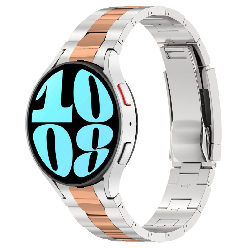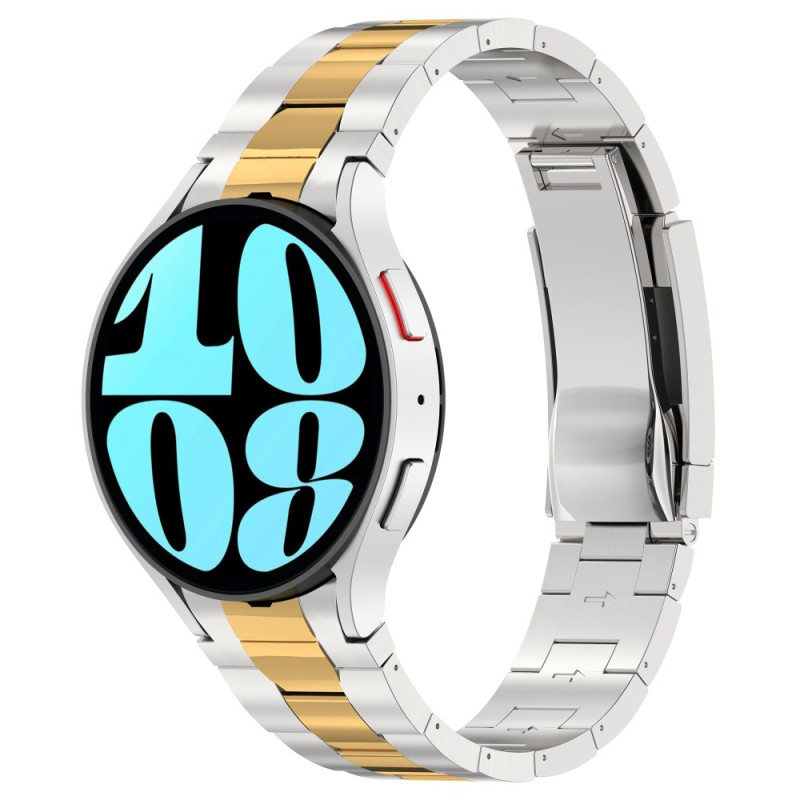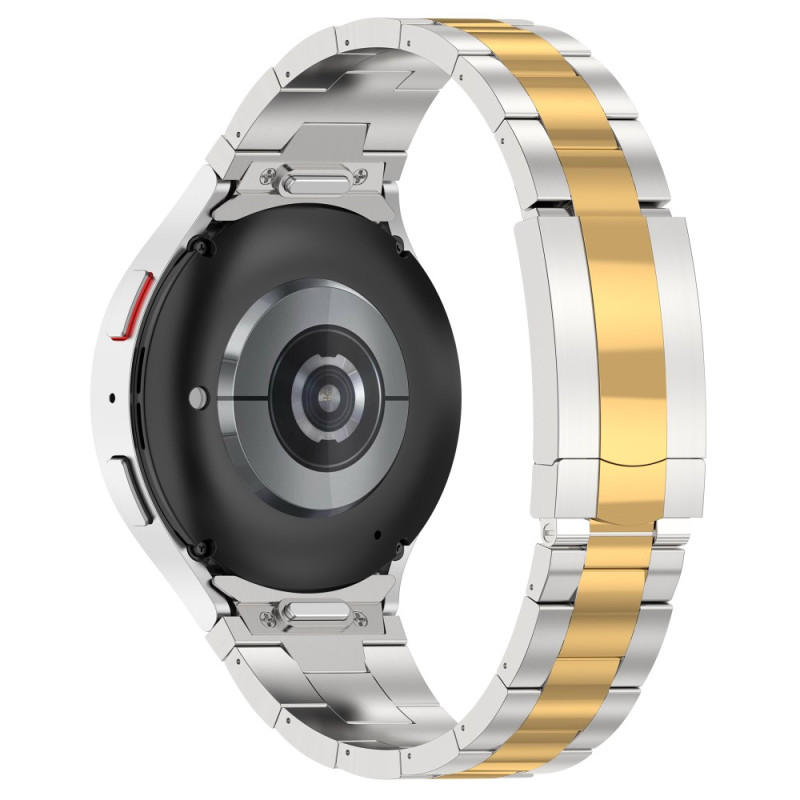 Rüsten Sie Ihre Samsung Galaxy Watch mit unserem hochwertigen Armband aus rostfreiem Stahl auf. Dieses langlebige Armband wurde für eine perfekte Passform und optimalen Tragekomfort entworfen und bietet einen eleganten Look sowie eine sichere Befestigung durch die Faltschließe.