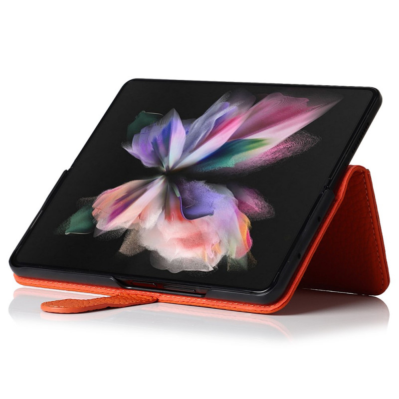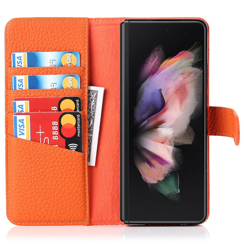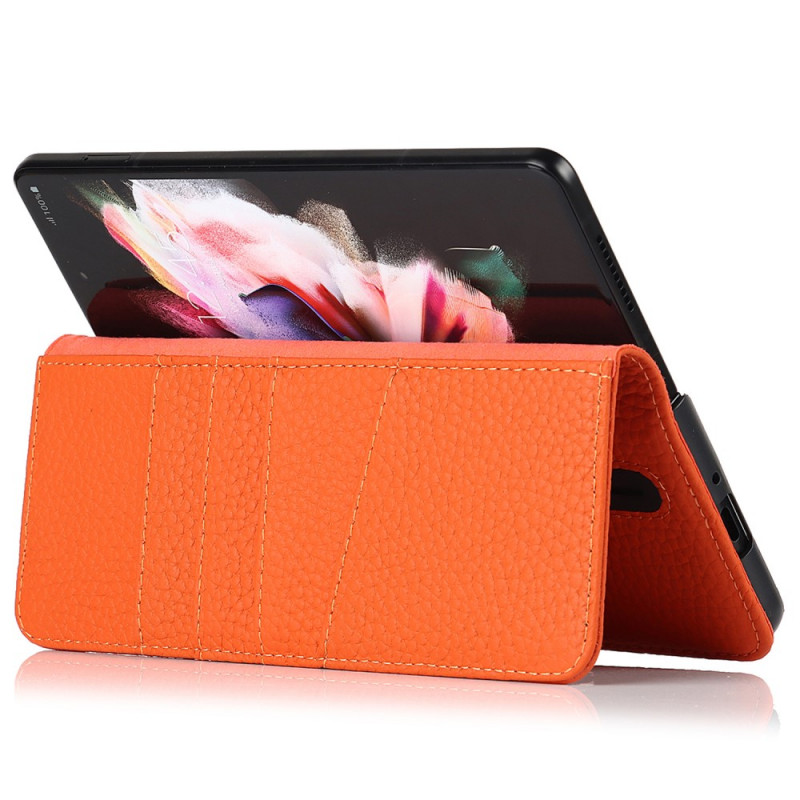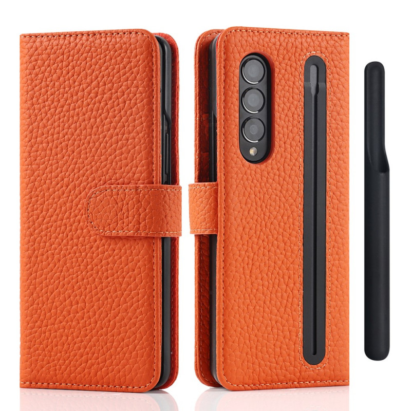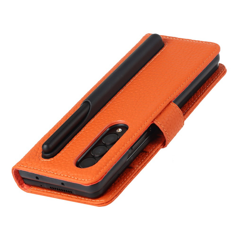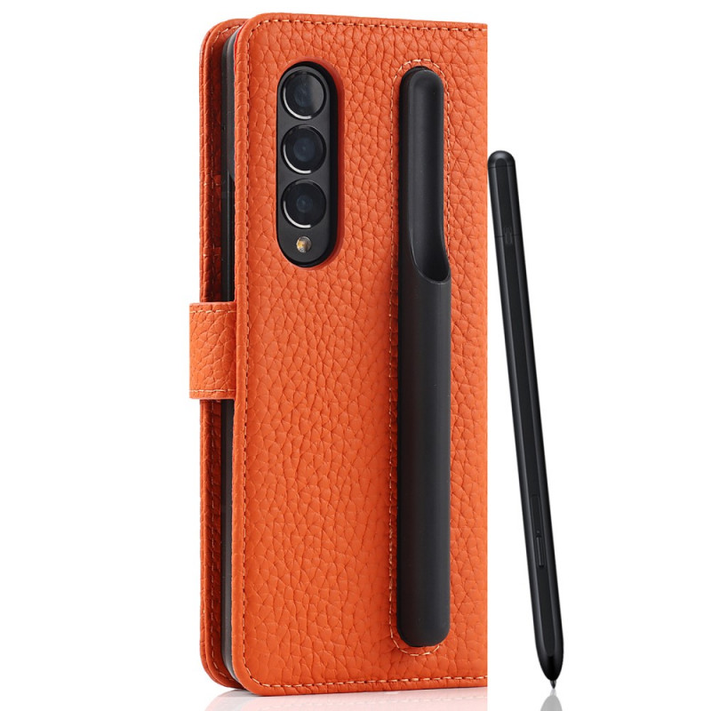 Eine wunderschöne, wetterfeste Hülle aus echtem Litschi-Leder mit Stifthalter für Ihr Samsung Galaxy Z Fold 3 5G.