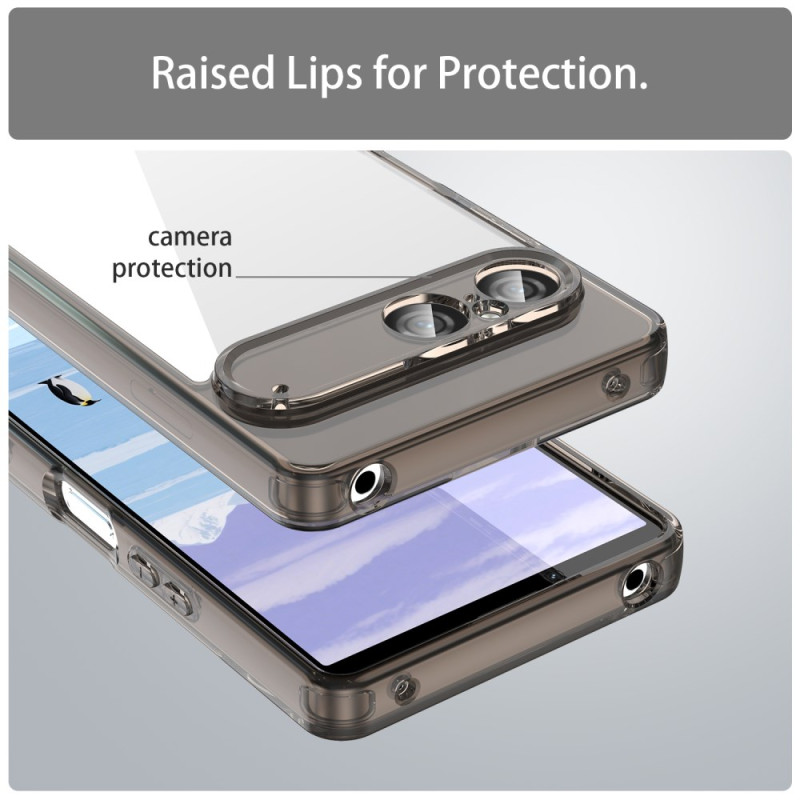 Entdecken Sie unsere robuste Schutzhülle für Ihr Sony Xperia 10 VII. Die aus strapazierfähigem TPU gefertigte Hülle bietet hervorragenden Schutz vor Kratzern und Stößen und behält gleichzeitig ihr elegantes Design bei. Die Hülle lässt sich leicht anbringen und passt sich perfekt an Ihr Handy an, ohne unnötiges Volumen zu schaffen.
