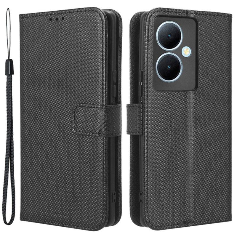 Elegante Brieftasche mit raffinierter Diamanttextur für Ihr Vivo V29 Lite 5G. Ausgestattet mit Kartenschlitzen, einem Fach für Bargeld und einem integrierten Klappständer für freihändiges Betrachten.