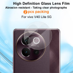 Schützen Sie die Linse Ihres Vivo V40 Lite 5G mit diesem Set aus zwei ultra-transparenten Folien aus gehärtetem Glas. Einfache blasenfreie Installation, Kratzfestigkeit und Anti-Streifen-Beschichtung für perfekte Fotos bei jeder Aufnahme.