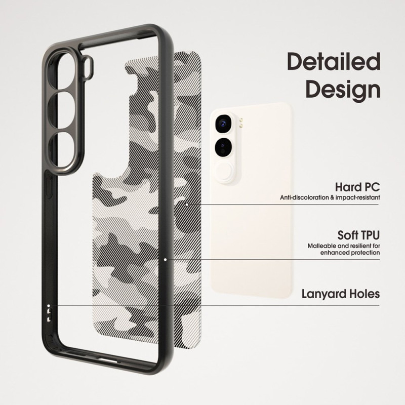 Schützen Sie Ihr Vivo V40 Lite 5G mit dieser extrem widerstandsfähigen, doppellagigen Hülle. Ergonomisches Design mit integriertem Airbag-Schutz, erhöhte Ränder für Bildschirm und Kamera, kompatibel mit kabellosem Laden.