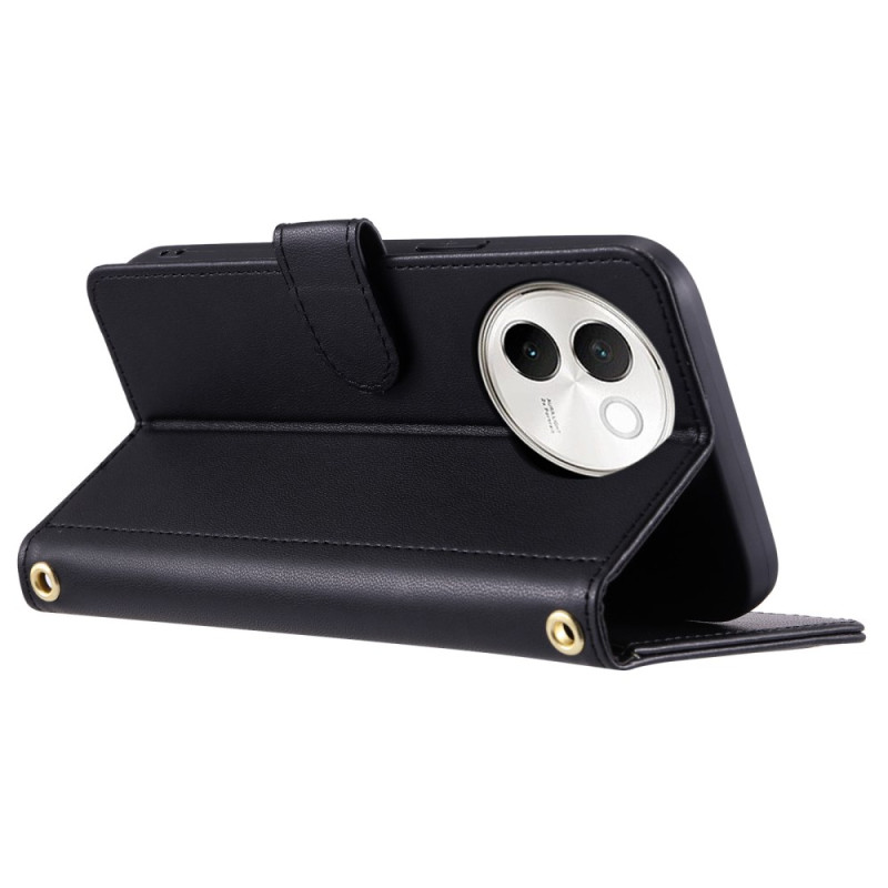 Elegante Brieftasche mit geprägtem Rautenmuster, integrierter Halterungsfunktion und doppelseitigem Magnetverschluss. Inklusive Kartenfächern, Münzfach und abnehmbarem Schultergurt für vielseitigen Transport.