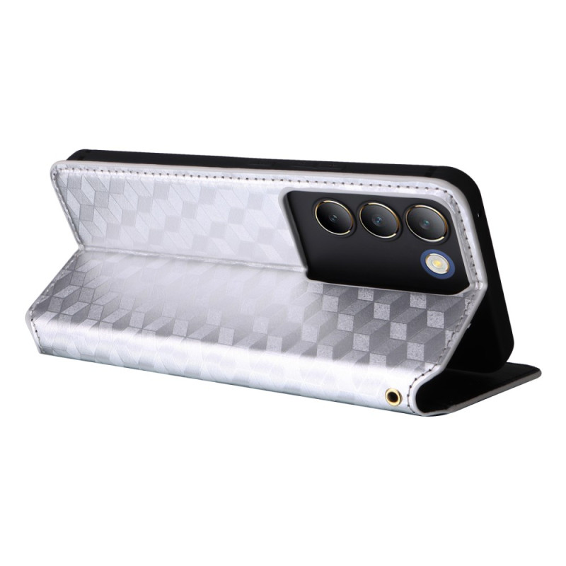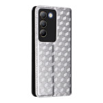 Schützen Sie Ihr Vivo V40 SE 5G elegant mit diesem Klappetui mit raffiniertem 3D-Rautenmuster. Funktionelles Design mit 2 Kartenfächern, 1 Bargeldfach und Freisprechfunktion.