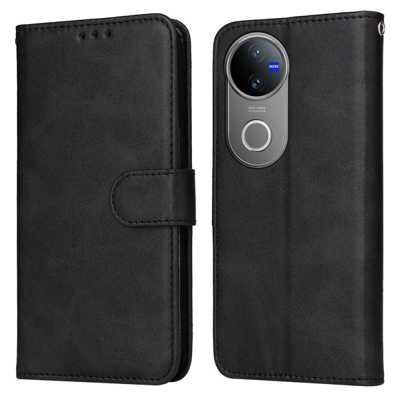 Elegante Brieftasche aus strukturiertem PU-Leder für vivo V50 5G. Klappendesign mit Kartenschlitzen, Halterungsfunktion, sicherem Magnetverschluss und 360° Rundumschutz. Inklusive einer praktischen Handschlaufe zum einfachen Tragen.