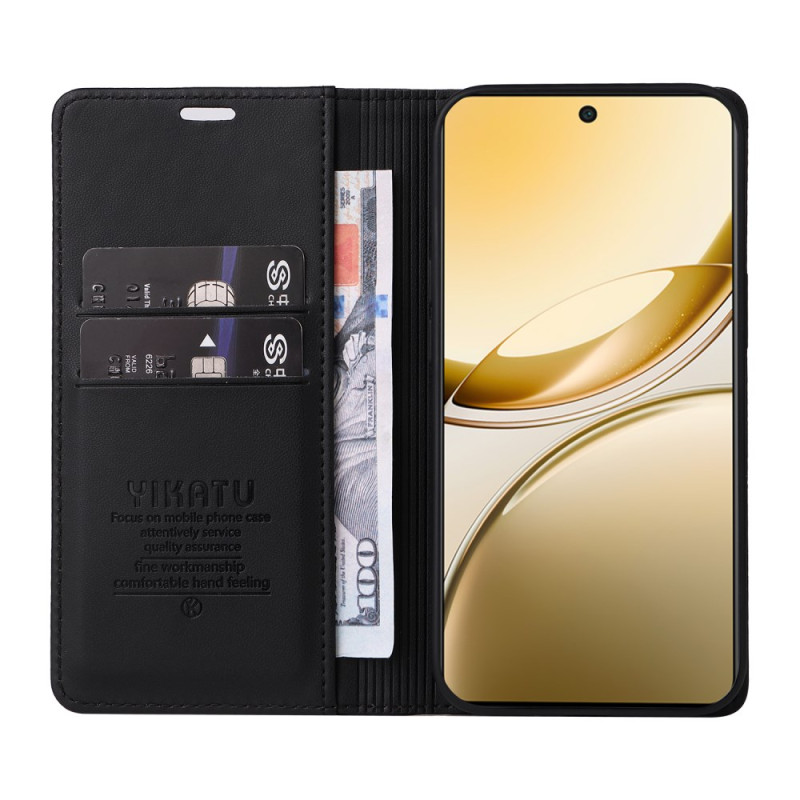 Schützen Sie Ihr Vivo V50 5G stilvoll mit dieser magnetischen Brieftasche von YIKATU. Mit zwei Kartenfächern und einem Bargeldfach vereint es Funktionalität und Stil. Dank seiner Standfunktion ist es ideal für freihändiges Betrachten.
