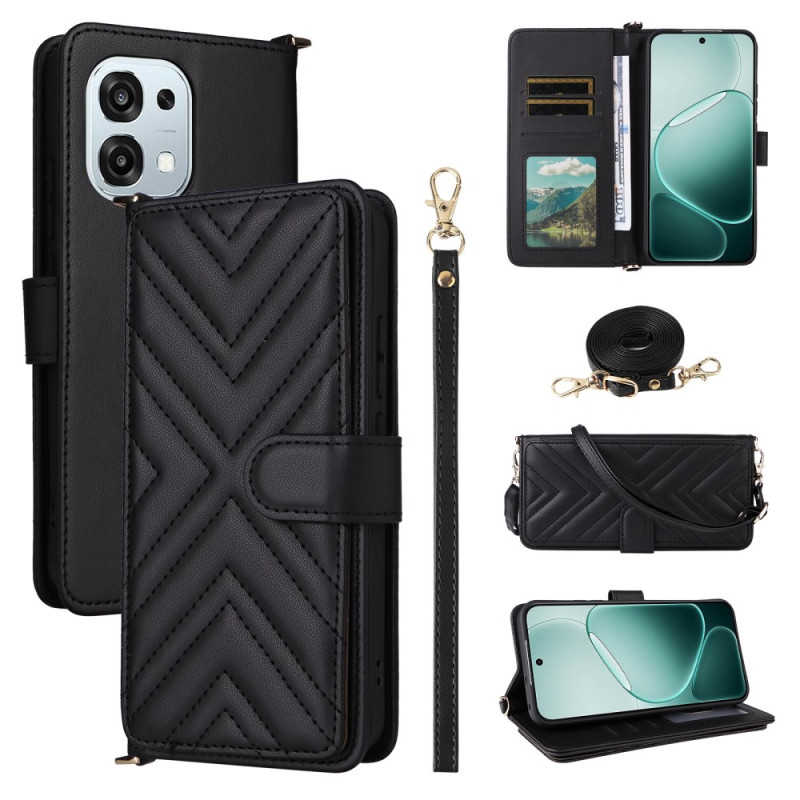 Étui portefeuille multifonction pour Oppo A6 Pro 5G. Design élégant avec support réglable, 6 emplacements pour cartes, fermeture magnétique sécurisée et bandoulière ajustable. Protection intégrale contre les chocs et rayures...