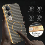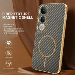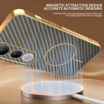 Eleganter und robuster Schutz für Ihr Vivo V50 Lite. Flexibles TPU-Design mit elektrolytischem Premium-Finish und spurloser Kohlefasertextur. Erhöhte Ränder zum Schutz des Bildschirms und der Kamera, präzise Ausschnitte und Kompatibilität mit magnetischem Ladegerät.