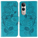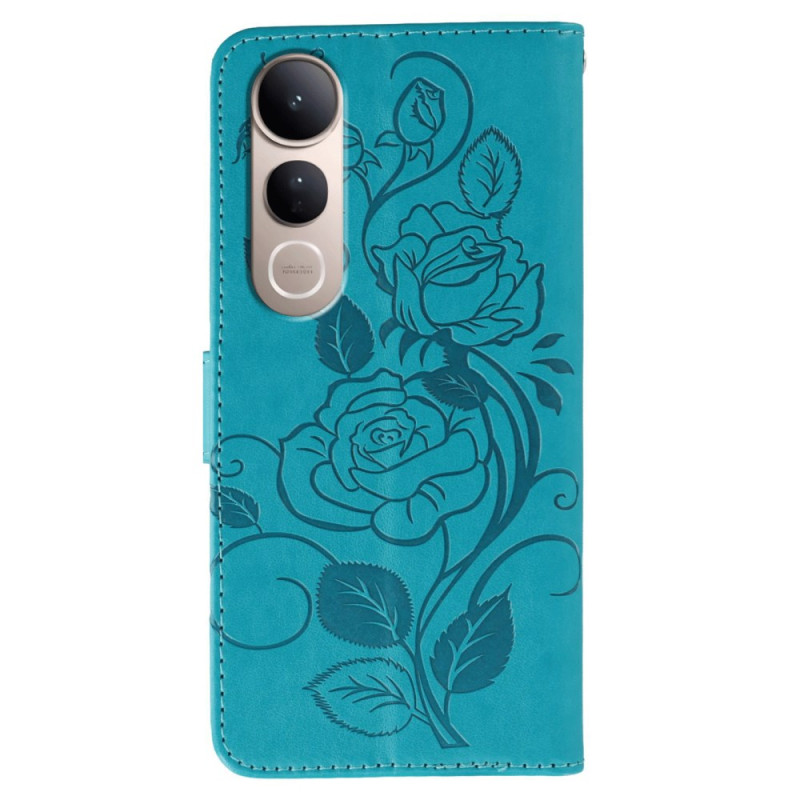 Elegante Brieftasche aus PU-Leder für das Vivo V50 Lite 4G/5G mit aufgedrucktem Schmetterlings- und Rosenmotiv. Ausgestattet mit 3 Kartenfächern, einem Seitenfach und einer Halterungsfunktion für ein optimales Freisprech-Erlebnis.