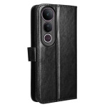 Elegante Brieftasche aus PU-Leder mit verrückter Pferdestruktur für das Vivo V50 Lite. Verfügt über 3 Kartenfächer, 1 Geldscheinfach, integrierte Halterung und Magnetverschluss. Vollständiger Schutz mit inbegriffener Handschlaufe für einen sicheren Transport.