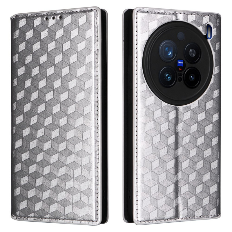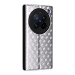 Elegante Brieftasche aus PU-Leder mit 3D-Rautenmuster für das Vivo X200 Pro 5G. Verfügt über 2 Kartenfächer, verstellbare Augenstütze und einen sicheren Magnetverschluss. 360° Rundumschutz vor Stößen und Kratzern.