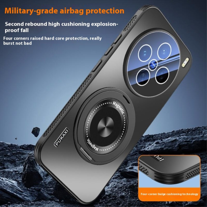 Schützen Sie Ihr Vivo X200 5G mit dieser MagSafe-kompatiblen Premium-Hülle. Mit einem um 360° drehbaren Ständer, einem Wärmeableitungssystem und einem verstärkten Schutz nach Militärstandard vereint sie Stil und Funktionalität für den Alltag.