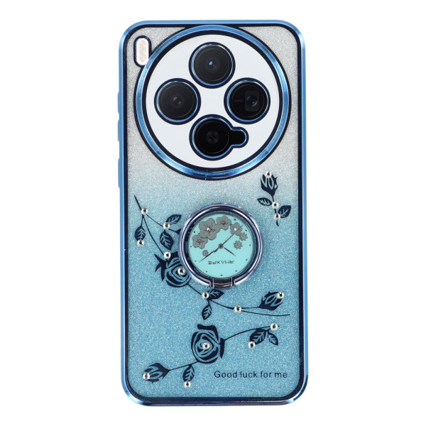 Schützen Sie Ihr Vivo X300 5G elegant mit dieser Hülle, die mit ewigen Blumen und Strasssteinen auf verlaufendem Glitter-Hintergrund verziert ist. Der integrierte Drehring bietet einen sicheren Halt und ermöglicht ein bequemes freihändiges Betrachten.