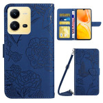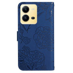 Elegante Brieftasche mit geprägtem Schmetterlings- und Blumenmuster für das Vivo X80 Lite 5G. Stoßfester Rundumschutz, verstellbare Halterung, Kartenfächer und Schultergurt im Lieferumfang enthalten. Sicherer Magnetverschluss.