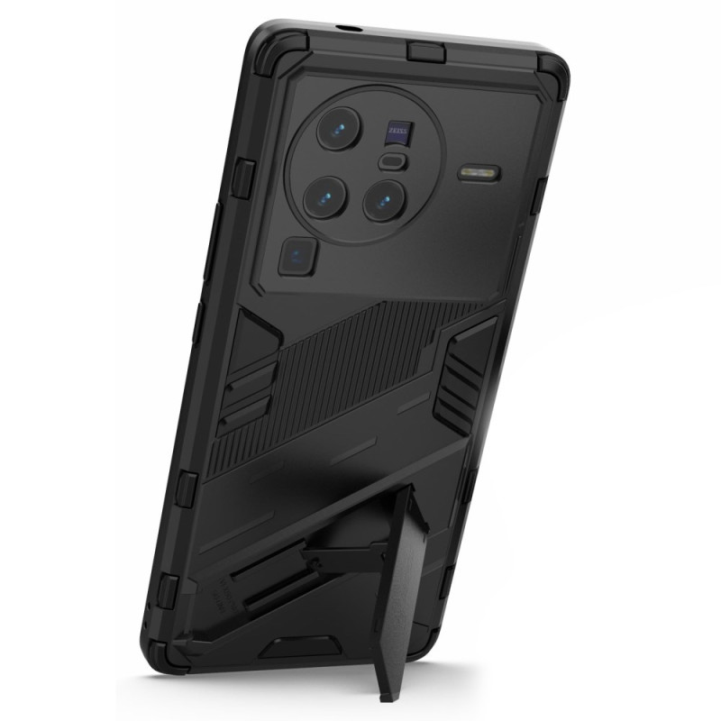 Schützen Sie Ihr Vivo X80 Pro 5G mit dieser robusten, doppellagigen Hülle. Mit einem unsichtbaren, faltbaren Ständer und einem verstärkten Schutz an den Ecken bietet sie umfassenden Schutz vor Stößen und Stürzen und ermöglicht gleichzeitig ein komfortables Betrachten.