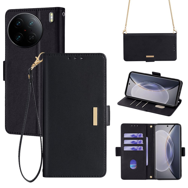 Schützen Sie Ihr vivo X90 Pro 5G stilvoll mit dieser multifunktionalen Brieftasche. Ausgestattet mit Anti-RFID-Technologie, mehreren Fächern für Karten und Bargeld und einem praktischen Schultergurt für den einfachen Transport im Alltag.
