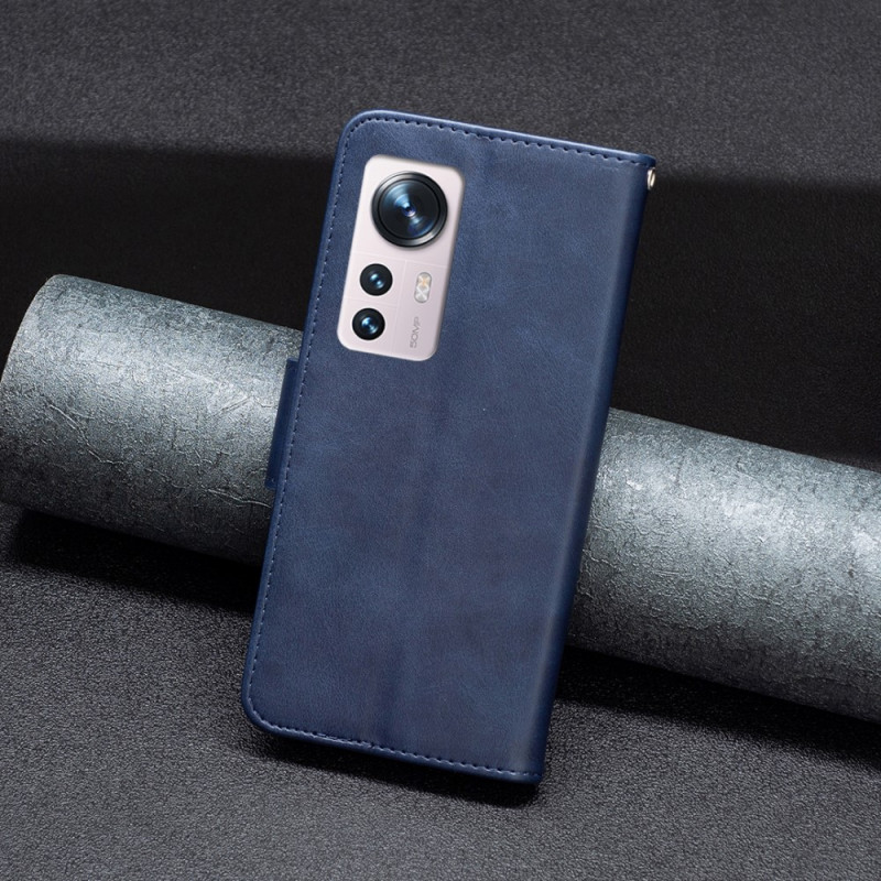 Entdecken Sie diese Hülle aus Kunstleder mit schrägem Verschluss, die Ihr Xiaomi 12 / 12X / 12S sichert und gleichzeitig als Brieftasche und Ständer dient.