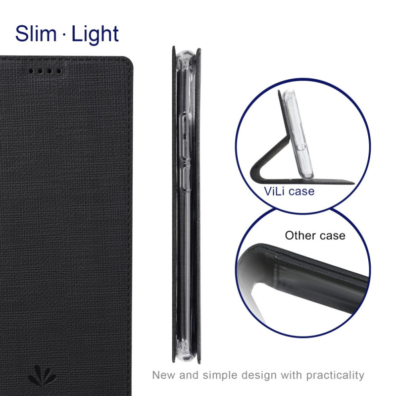 Wähle dieses Flip Cover aus strukturiertem Kunstleder von Vili, um dein Xiaomi 13 zu schützen.