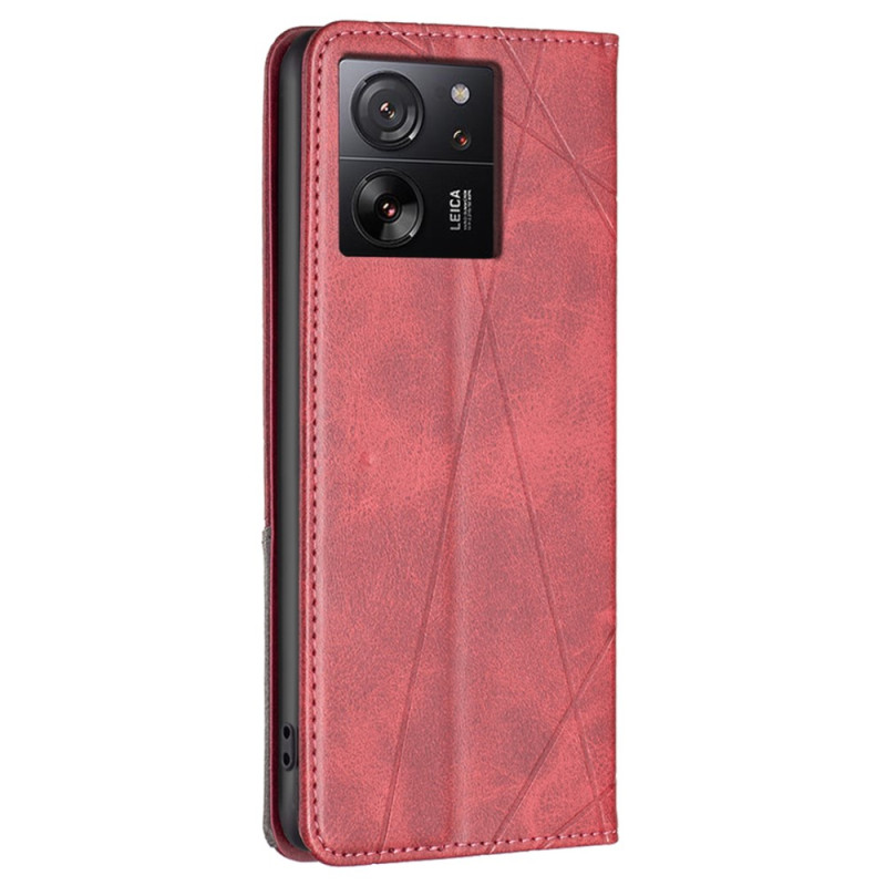 Schützen Sie Ihr Xiaomi 13T / 13T Pro stilvoll mit diesem Flip Cover aus Kunstleder mit Rautenverzierung.