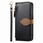 Étui portefeuille élégant pour Xiaomi 17 Pro Max avec fermeture magnétique en forme de feuille. Dispose de 3 emplacements pour cartes, 1 poche à billets, une poche zippée extérieure et une dragonne amovible. Support intégré pour visionnage mains libres.