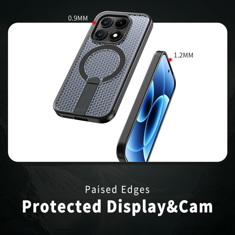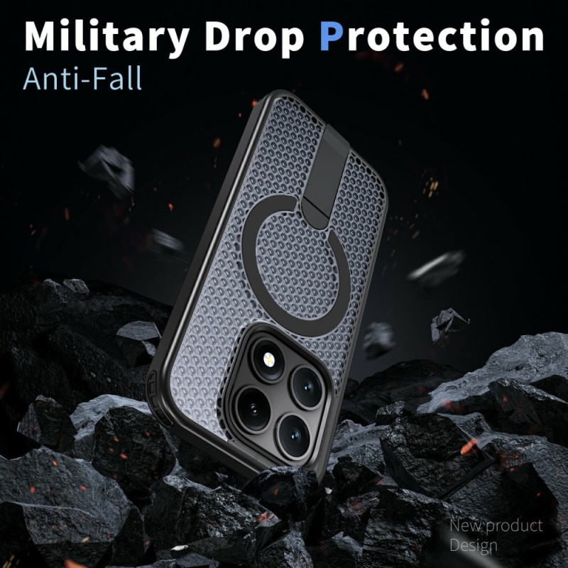 Schützen Sie Ihr Xiaomi 17 stilvoll mit dieser magnetischen Hülle mit moderner Gitterstruktur und integriertem Ständer. Die MagSafe-kompatible Hülle bietet einen erhöhten Schutz vor Stürzen und verbessert gleichzeitig die Wärmeableitung um 50%.
