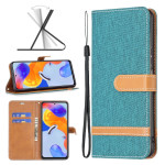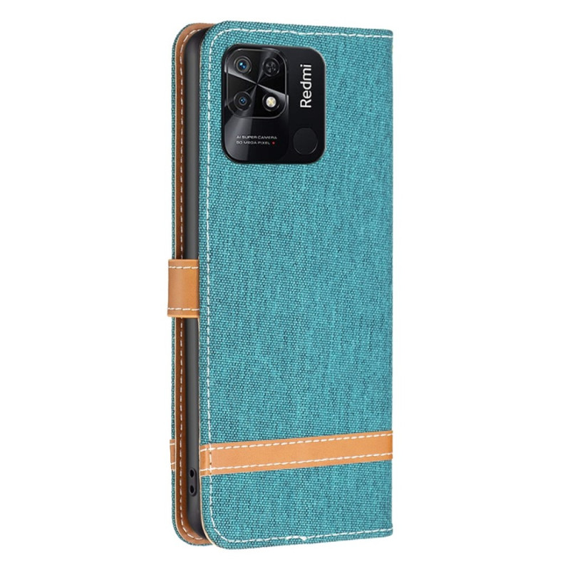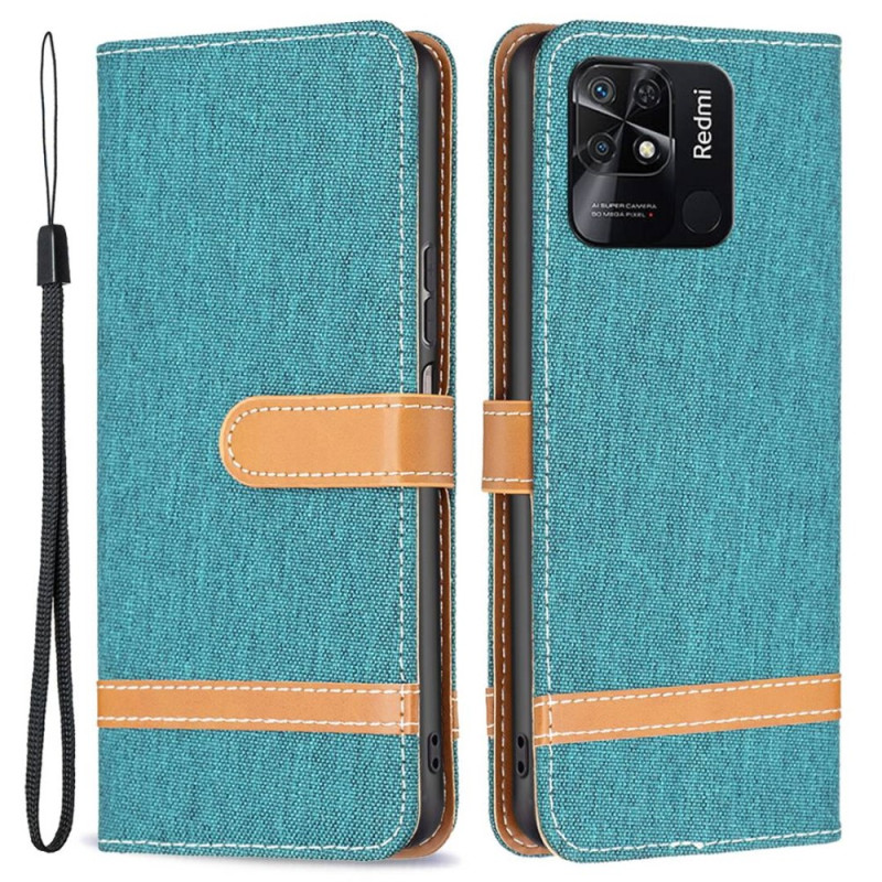 Xiaomi Redmi 10C Stoff und Lederoptik Tasche mit Riemen