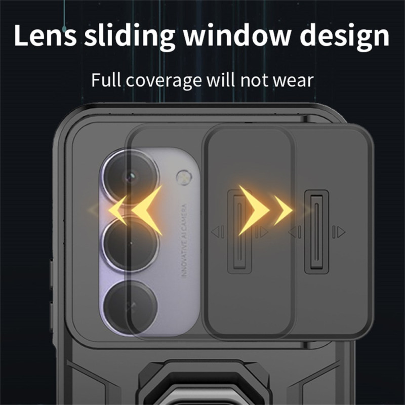 Entdecken Sie unsere robuste Schutzhülle für das Xiaomi Redmi 15 4G. Ausgestattet mit einer praktischen Drehhalterung und einem beweglichen Objektivschutz, vereint diese Hülle Haltbarkeit und Funktionalität. Sie ist aus hochwertigem PC und TPU gefertigt und bietet hervorragenden Schutz vor Stößen und Kratzern.