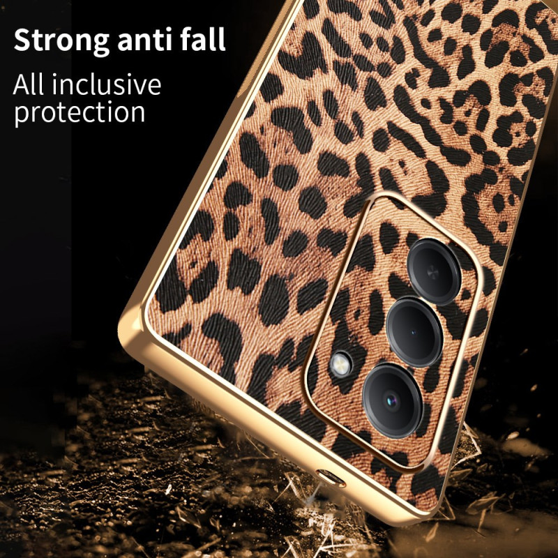 Entdecken Sie unser schickes und schützendes Etui für Xiaomi Redmi 15 4G. Mit seinem kühnen Leopardendesign und den elektroplattierten goldenen Kanten vereint es Stil und Haltbarkeit. Die Konstruktion aus PU-Leder, weichem TPU und hartem PC bietet optimalen Schutz. Die präzisen Schnitte sorgen für einen einfachen Zugriff auf alle Funktionen...