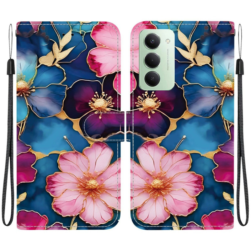 Entdecken Sie unsere elegante Brieftasche für Xiaomi Redmi 15 4G. Sie ist aus hochwertigem PU-Leder und TPU gefertigt und bietet ein einzigartiges Design mit einem blauen und goldenen Blumenmuster. Genießen Sie umfassenden Schutz, einen praktischen Klappständer und Aufbewahrungsmöglichkeiten für Ihre Karten und Ihr Geld.