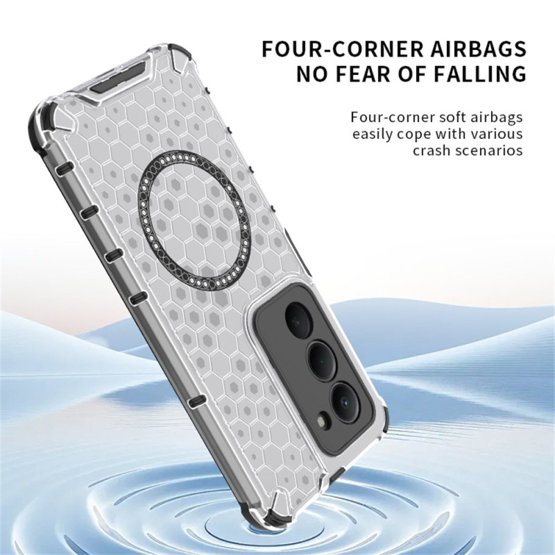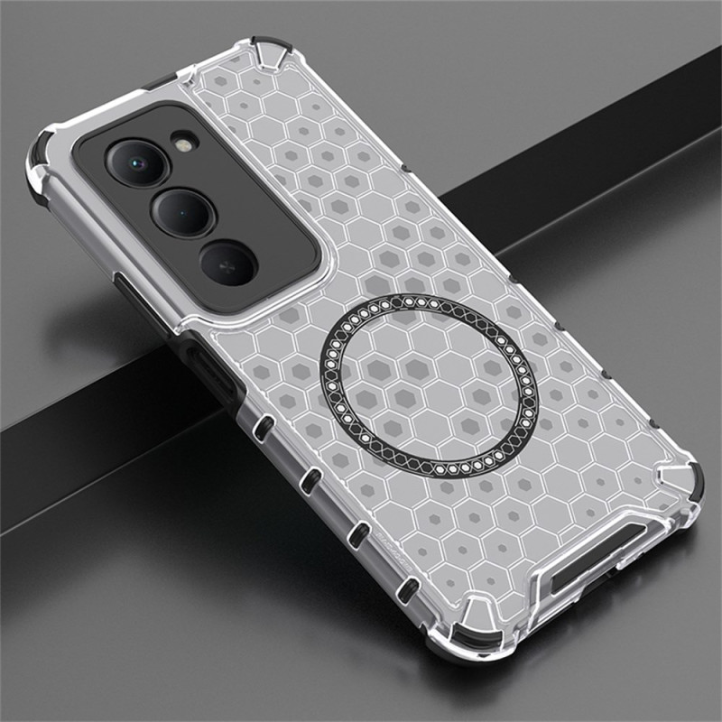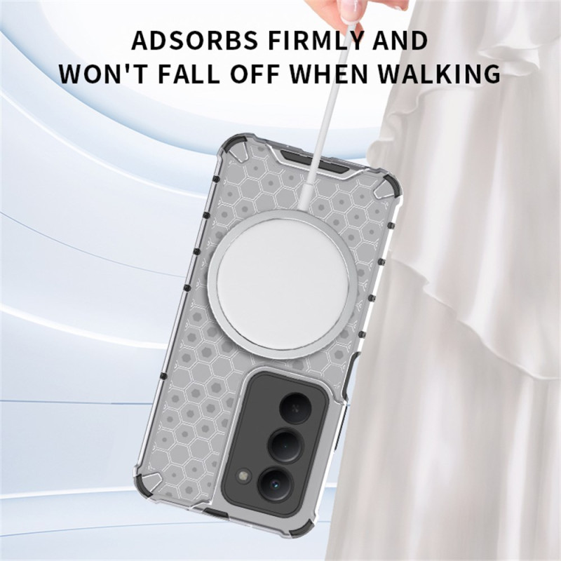 Schützen Sie Ihr Smartphone elegant mit dieser Hybrid-Hülle im raffinierten Wabendesign. Das TPU + PC-Design bietet zusätzlichen Schutz an den Ecken, integrierte MagSafe-Kompatibilität und optimale Stoß- und Kratzfestigkeit.