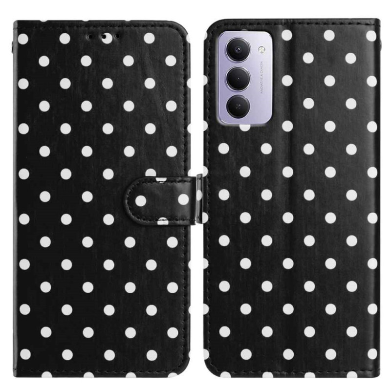 Elegante Brieftasche mit gepunktetem Muster für Xiaomi Redmi 15 5G/4G. Raffiniertes Design mit Erbsenmuster, verstellbarer Standfunktion, 3 Kartenfächern und sicherem Magnetverschluss. Vollständiger Schutz aus hochwertigem PU-Leder.