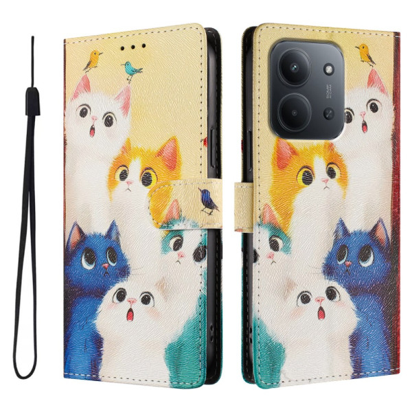 Schützen Sie Ihr Xiaomi Redmi 15C 5G / 5G mit dieser eleganten und funktionalen Brieftasche. Mit einem bunten Katzenmotiv versehen, bietet es dauerhaften Schutz, Kartenschlitze, eine Ständerfunktion und eine abnehmbare Handschlaufe. Diese Tasche aus PU-Leder mit TPU-Innenschale vereint Stil und Zweckmäßigkeit und bietet umfassenden Schutz vor Stürzen und Kratzern.