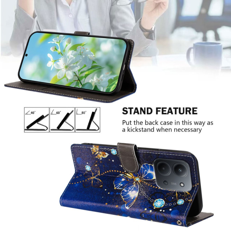 Entdecken Sie unsere multifunktionale Brieftasche für Xiaomi Redmi 15C 5G / 4G. Es vereint Stil und Zweckmäßigkeit und bietet dauerhaften Schutz, ein attraktives blaues Schmetterlingsdesign, praktische Verstaumöglichkeiten und eine Ständerfunktion. Perfekt, um Sicherheit und Eleganz im Alltag zu vereinen.