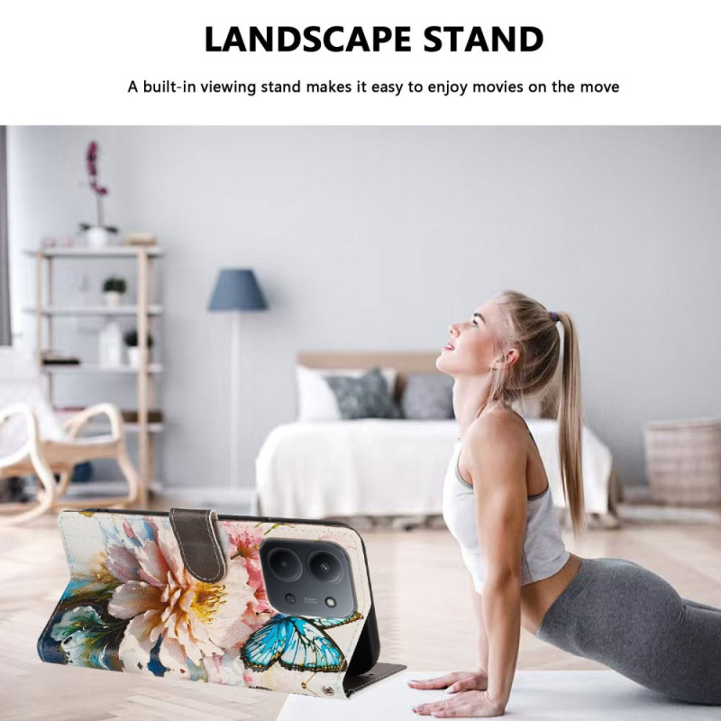 Entdecken Sie unsere Brieftasche aus PU-Leder für Xiaomi Redmi 15C 5G / 4G, die Stil und Funktionalität vereint. Mit ihrem Schmetterlings-/Blumendruck-Design, den Aufbewahrungsschlitzen und der Standfunktion bietet sie umfassenden Schutz und verleiht Ihrem Handy gleichzeitig einen Hauch von Eleganz. Dank der abnehmbaren Handschlaufe und des Magnetverschlusses ist die Tasche auch im Alltag praktisch zu verwenden.
