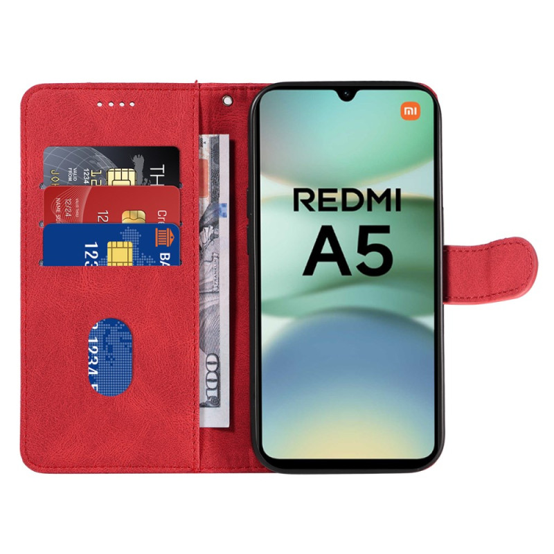 Entdecken Sie unsere elegante Brieftasche für das Xiaomi Redmi A5. Die Kombination aus PU-Leder und TPU bietet ein gepolstertes Design mit geschwungenen Linien. Mit drei Kartenfächern, einem Seitenfach, einer Standfunktion und einem Magnetverschluss vereint dieses All-in-One-Etui Stil und Zweckmäßigkeit, um Ihr Handy optimal zu schützen.