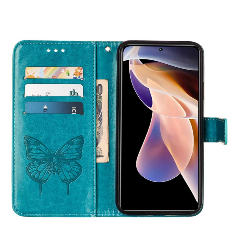 Die Schmetterling Design Hülle schützt das gesamte Xiaomi Redmi Note 11 Pro Plus und kommt mit einem Lanyard.