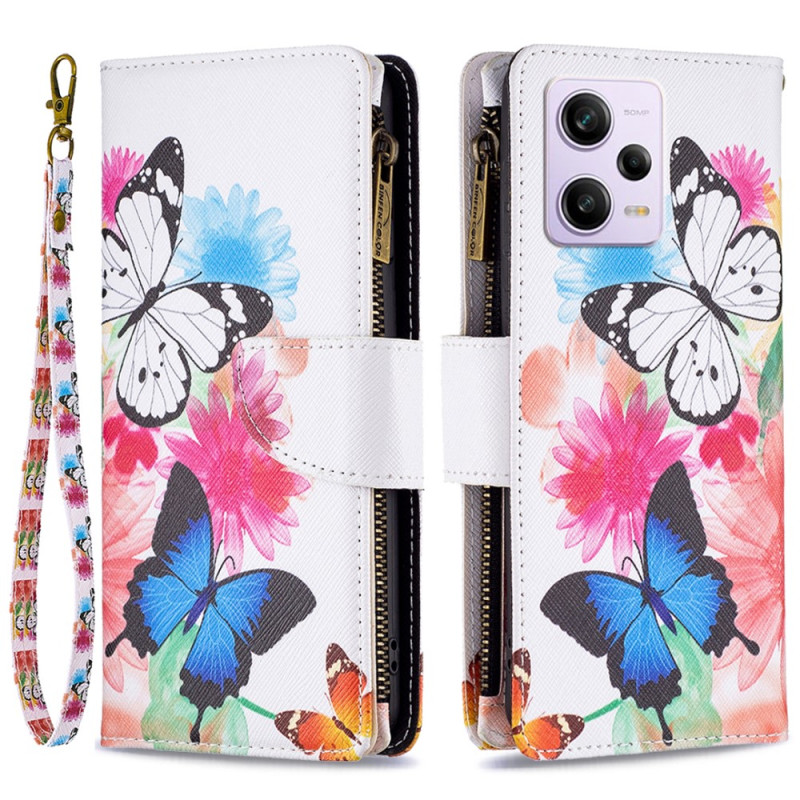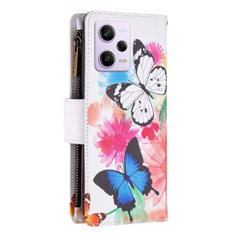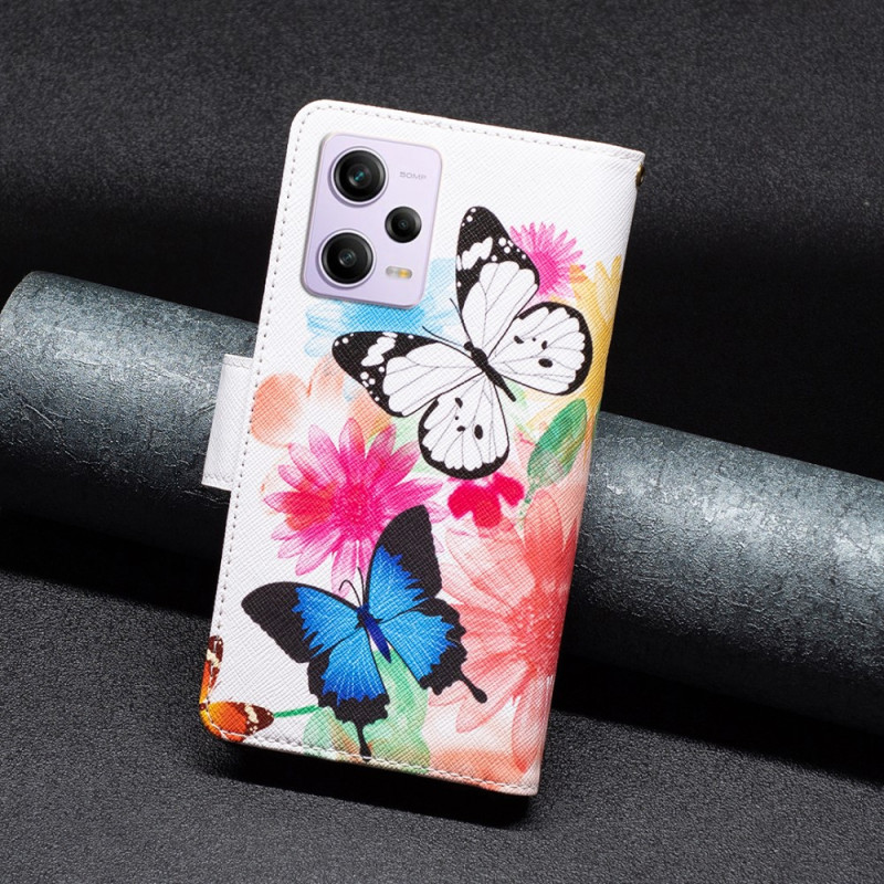 Die Hülle mit Geldbörse Schmetterlinge sichert und bietet optimierte Optionen für das Xiaomi Redmi Note 12 Pro 5G/Poco X5 Pro 5G.