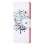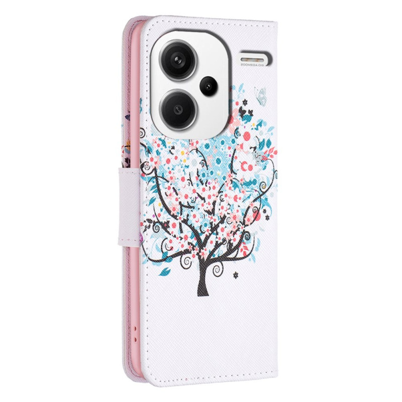 Un étui raffiné pour le Xiaomi Redmi Note 13 Pro Plus 5G, doté d'un porte-cartes et présentant un motif délicat d'arbre fleuri.