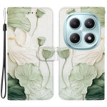 Elegante Brieftasche aus Kunstleder mit Lotusmuster für Xiaomi Redmi Note 15 5G. Raffiniertes Design mit faltbarem Ständer, Kartenfächern, sicherem Magnetverschluss und praktischer Handschlaufe. Umfassender Schutz, der Stil und Funktionalität vereint.
