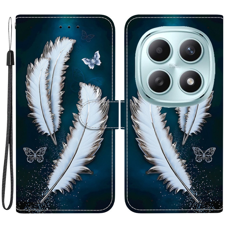 Schützen Sie Ihr Xiaomi Redmi Note 15 5G elegant mit dieser aufklappbaren Brieftasche mit weißem Schmetterlingsfeder-Motiv. Ausgestattet mit einer Ständerfunktion, Kartenschlitzen, einem sicheren Magnetverschluss und einem abnehmbaren Trageriemen für den bequemen Transport.