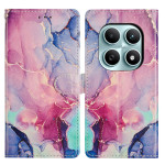 Elegante Brieftasche mit rosa und grünem Marmormuster für das Xiaomi Redmi Note 15 5G. All-in-One-Design mit 2 Kartenfächern, 1 Fototasche und Seitenfach. Integrierte Halterung für freihändiges Betrachten und abnehmbare Handschlaufe im Lieferumfang enthalten.