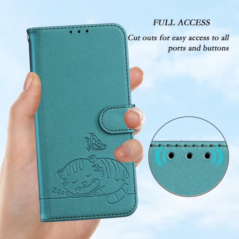 • Eleganter Schutz aus weichem TPU und Kunstleder mit eingraviertem Motiv für schlafende Katzen und Schmetterlinge, der umfassenden Schutz und einen einzigartigen Stil bietet.