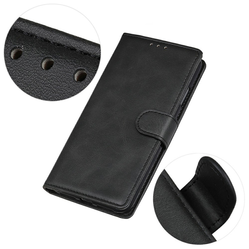 Elegantes Etui aus Kunstleder mit Rindslederstruktur und robuster TPU-Schale. Enthält 3 Kartenfächer, ein seitliches Bargeldfach, einen doppelseitigen Magnetverschluss und eine integrierte Halterungsfunktion für freihändiges Betrachten.